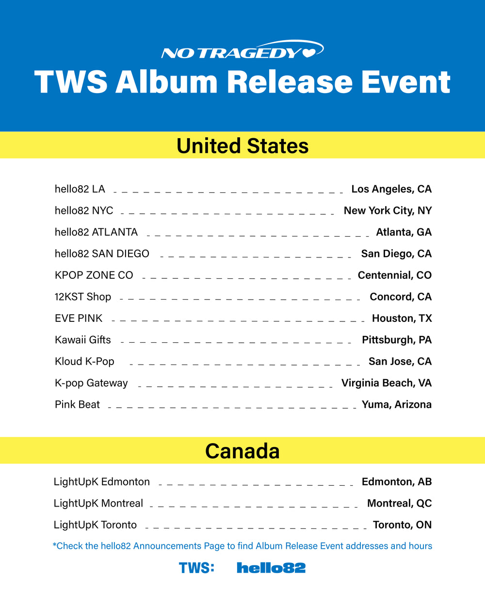Albums will be available for purchase @ locations with 💿