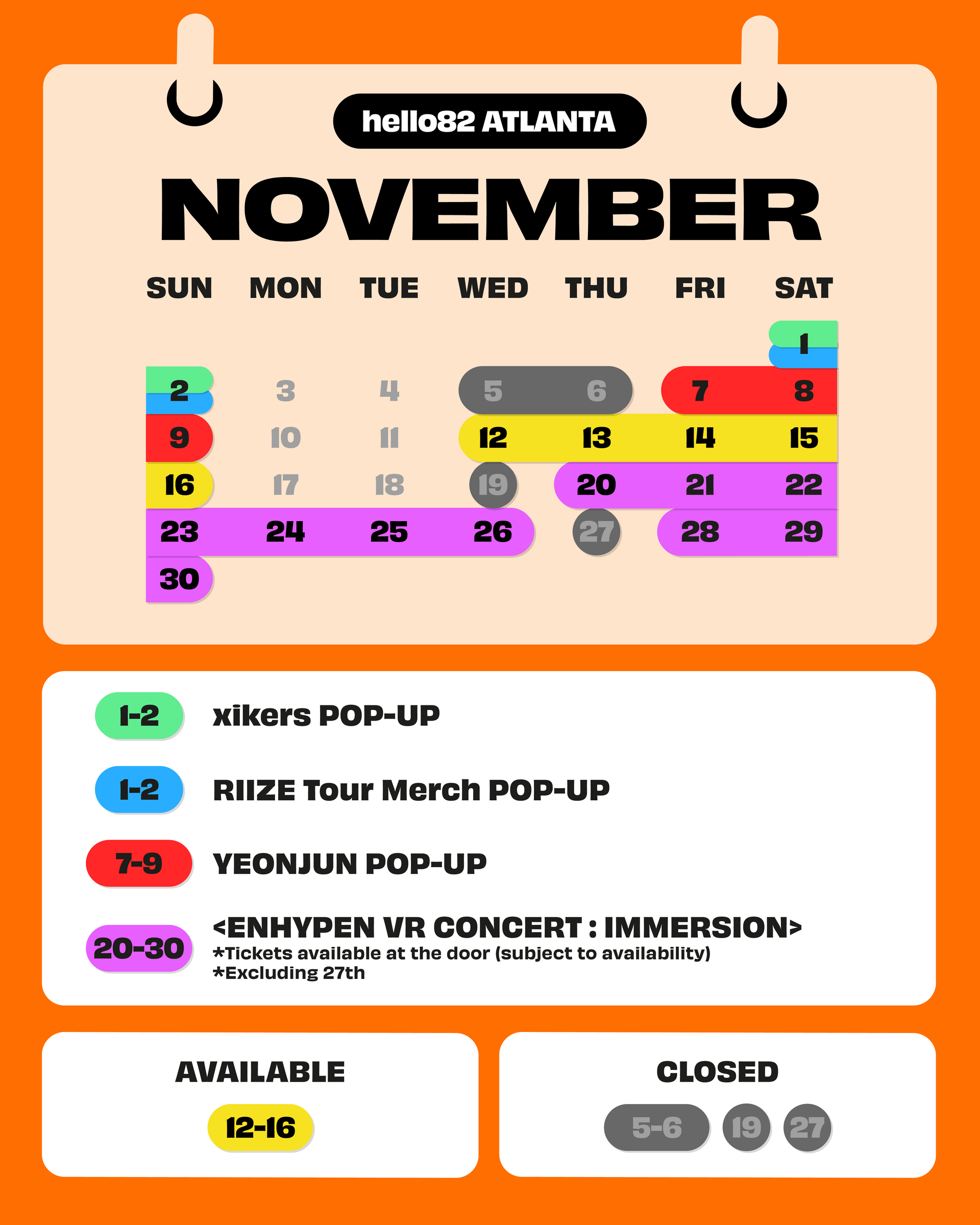 Fill out the form below to reserve the hello82 ATLANTA space to celebrate your idol's birthday's, anniversaries, comebacks, etc. with cupsleeve events, watch parties, and more!
