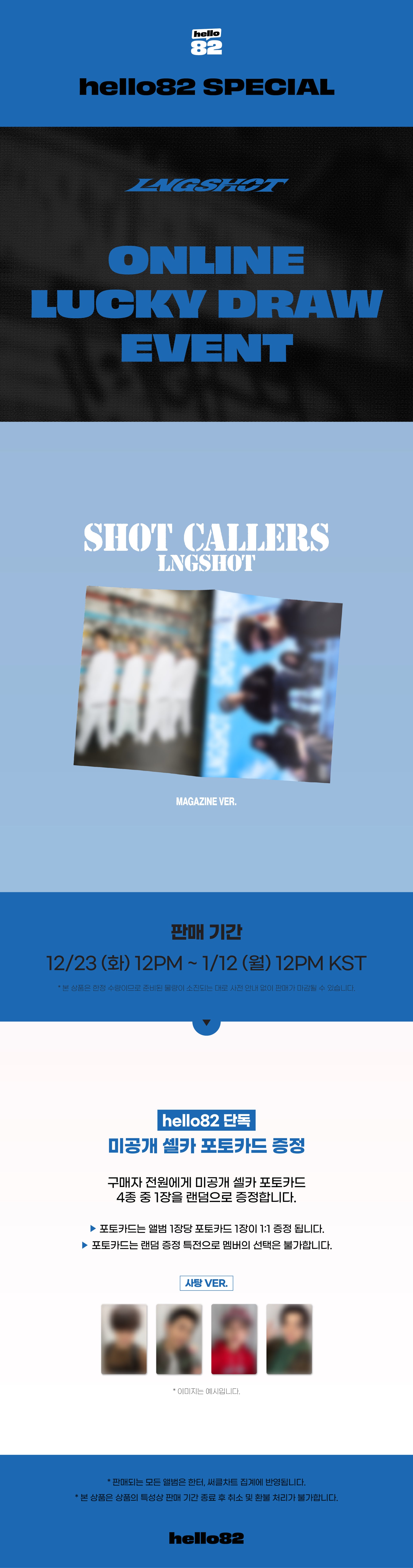 For each album purchased, 1 random lucky draw exclusive Photocard (1 of 4) will be given. You cannot choose the member.